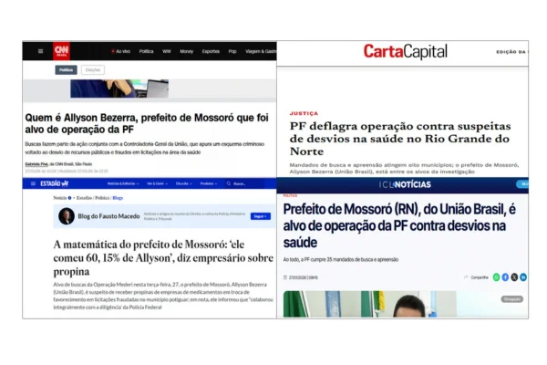 A CNN Brasil não apenas noticiou a operação como trouxe um desdobramento com perfil político do prefeito: “Quem é Allyson Bezerra, prefeito de Mossoró que foi alvo de operação da PF”.
