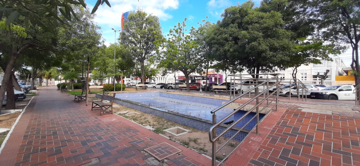 Quem passa pelo chamado centro comercial de Mossoró se depara como o abandono da histórica praça Bento Praxedes, um dos principais cartões postais da cidade. O cenário é de destruição com calçadas e bancos quebrados, fonte de água sem funcionar, relógio parado e sistema elétrico totalmente inutilizado